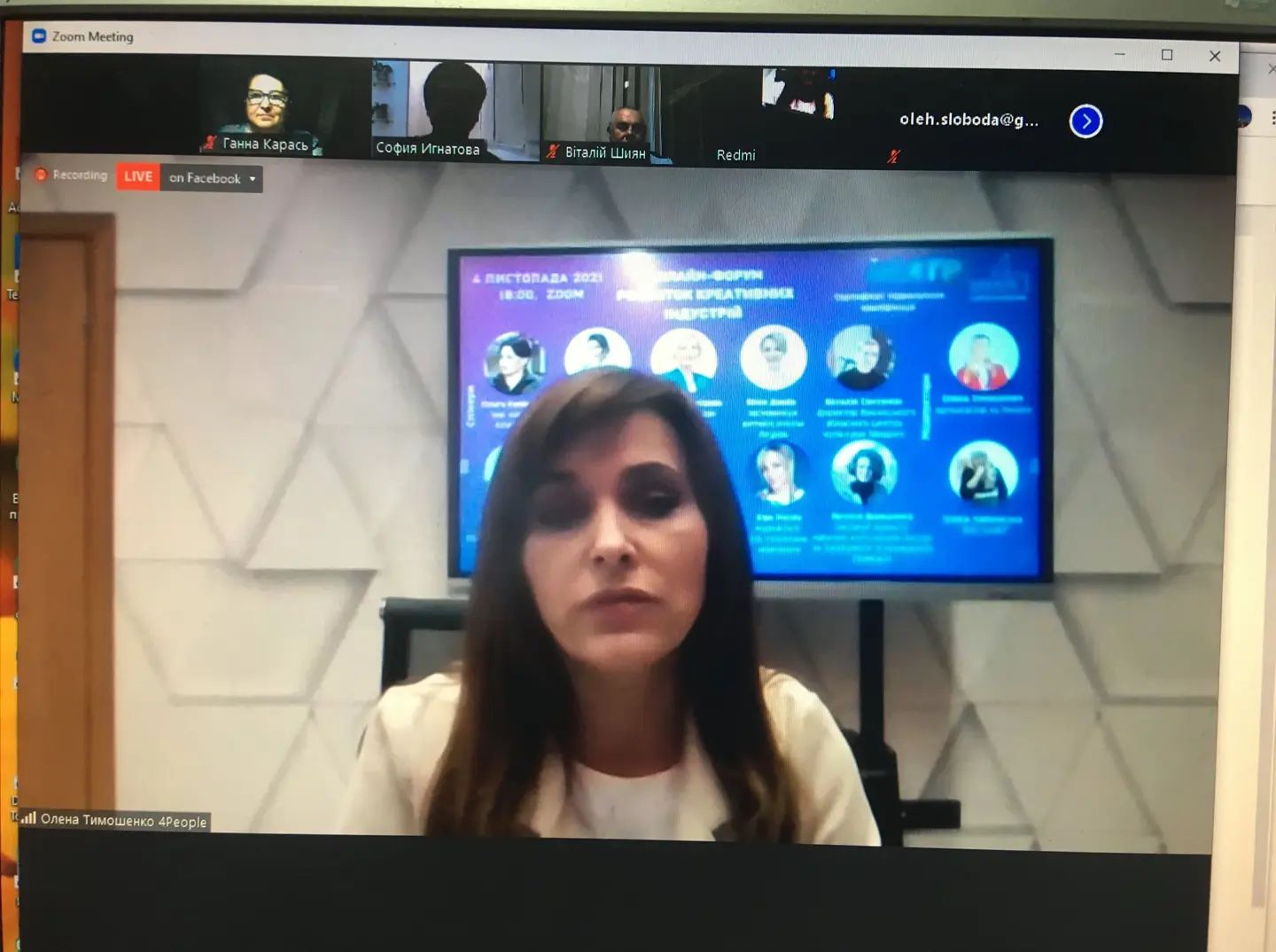 4 листопада відбувся онлайн-форум на тему «Розвиток креативних індустрій». Він був організований у рамках спільного проєкту факультету івент-менеджменту, фешн і шоу бізнесу, кафедри комп’ютерних наук, освітньої платформи «4 People» і ВГО «УАФІТ». У ньому взяла участь проф. Осадча К. П. та понад 150 експертів, науковців і представників бізнесу з різних міст України.