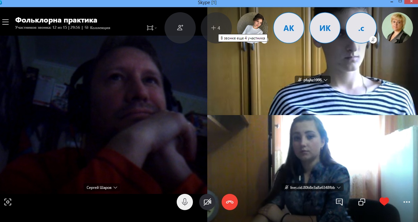 До онлайн зв’язку заздалегідь було підключено студентів І курсу. Старший лаборант кафедри української і зарубіжної літератури Коваленко А.С. успішно додала усіх здобувачів до групи у Skype режимі, назвавши групу «Фольклорна практика». Усі учасники групи вчасно зайшли в Skype та мали змогу детально ознайомитись із особливостями навчальної (фольклорної) практики, яка буде відбуватись у дистанційному режимі.
