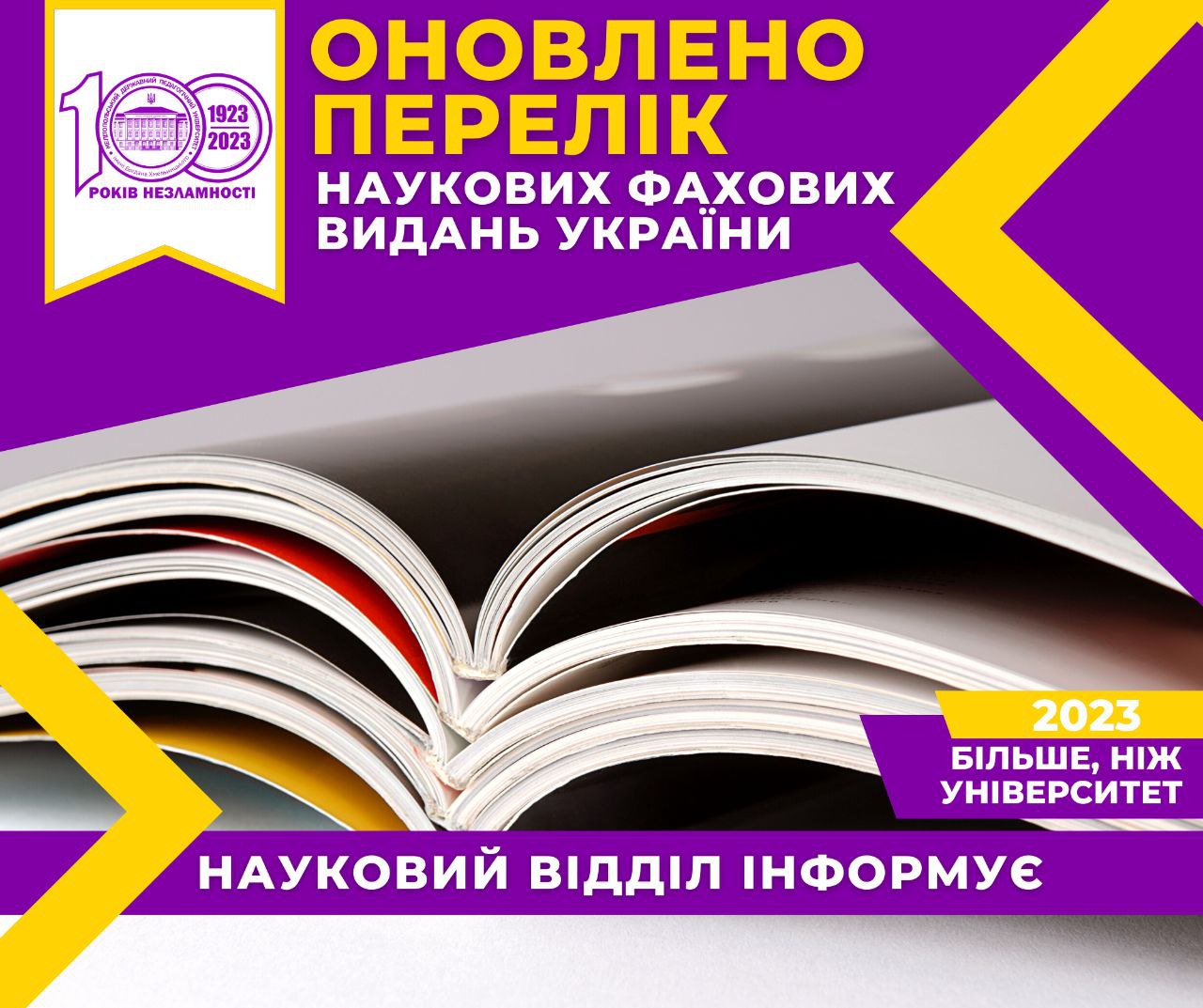НАУКОВИЙ ВІДДІЛ ІНФОРМУЄ! ОНОВЛЕНО ПЕРЕЛІК НАУКОВИХ ФАХОВИХ ВИДАНЬ УКРАЇНИ!