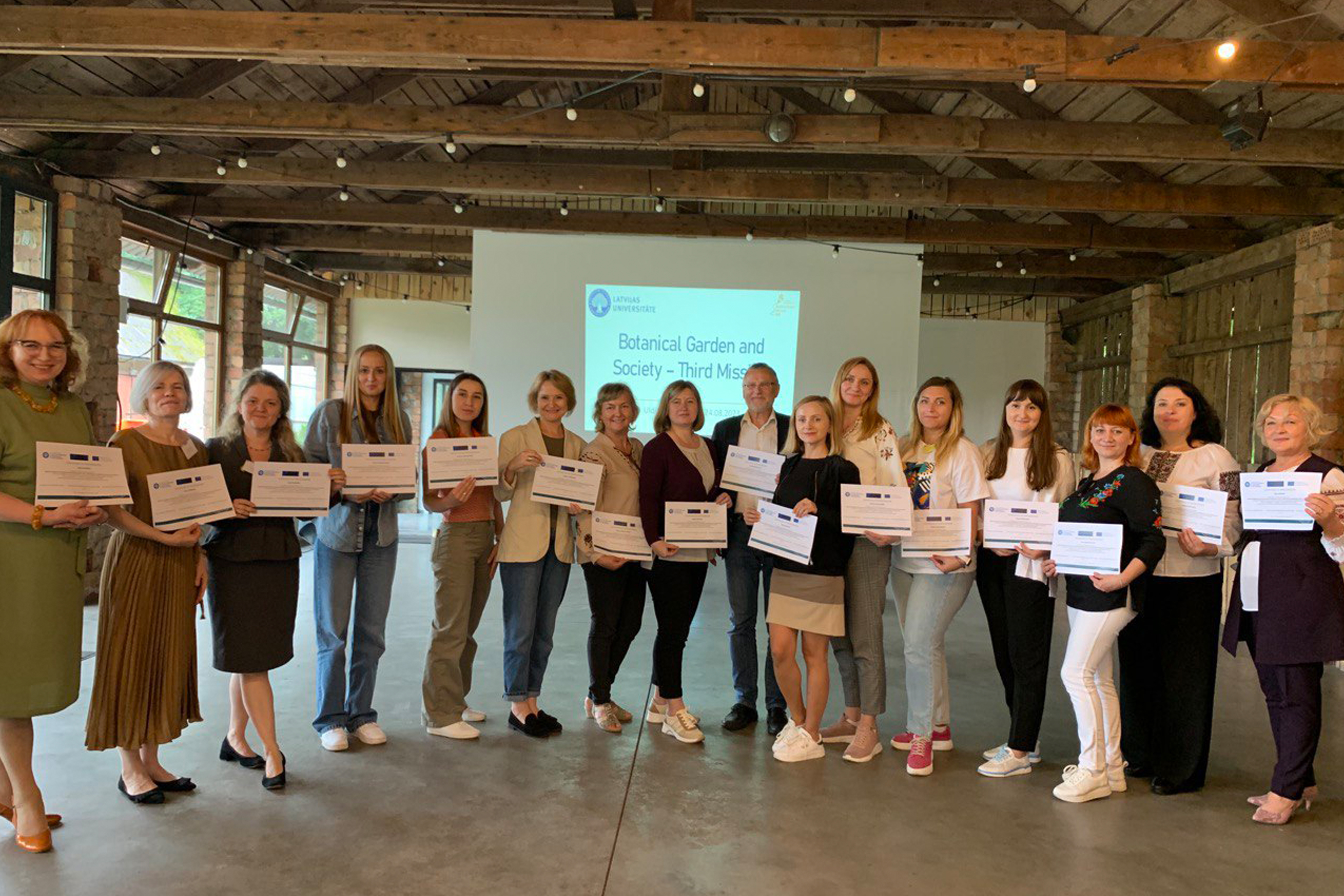 24 серпня тренінгова програма розпочалася з виконання гімну України і теплих привітань від представників латвійського народу. Після цього фахівчині Академічного відділу – менеджерка з якості S.Bondare та експертка із забезпечення якості освіти I.Sturmane – висвітлили особливості управління якістю і забезпечення якості освіти латвійських ЗВО крізь призму їх третьої місії. Разом з професоркою G.Kalvane, доцентом U.Kondratovičs і професоркою Байбою Шавріною група українських викладачів змогла ознайомитися з науково-освітніми можливостями, які забезпечують Академічний центр Університету Латвії та Ботанічний сад.