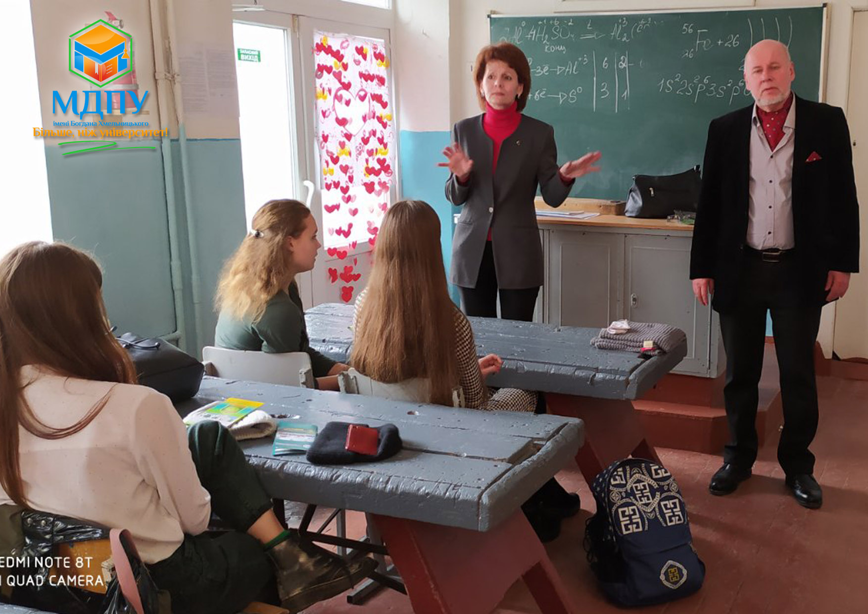 Під час зустрічі з учнями 11 класу вони розповіли про Мелітопольський державний педагогічний університет імені Богдана Хмельницького, спеціальності, з яких відбувається підготовка здобувачів вищої освіти, особливості вступу та навчання в університеті, а головне – про переваги навчання саме в цьому закладі вищої освіти. Особливу увагу було приділено потенційному працевлаштуванню випускників, актуальності спеціальностей, запропонованих університетом, а також особистісному підходу до навчання здобувачів вищої освіти.