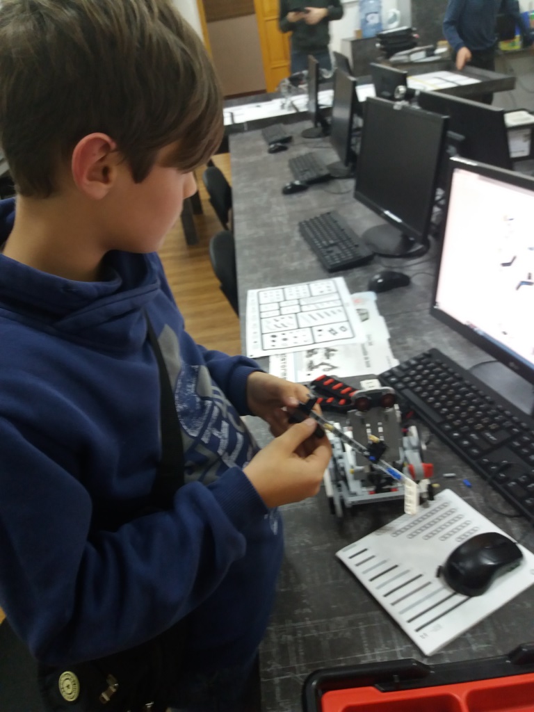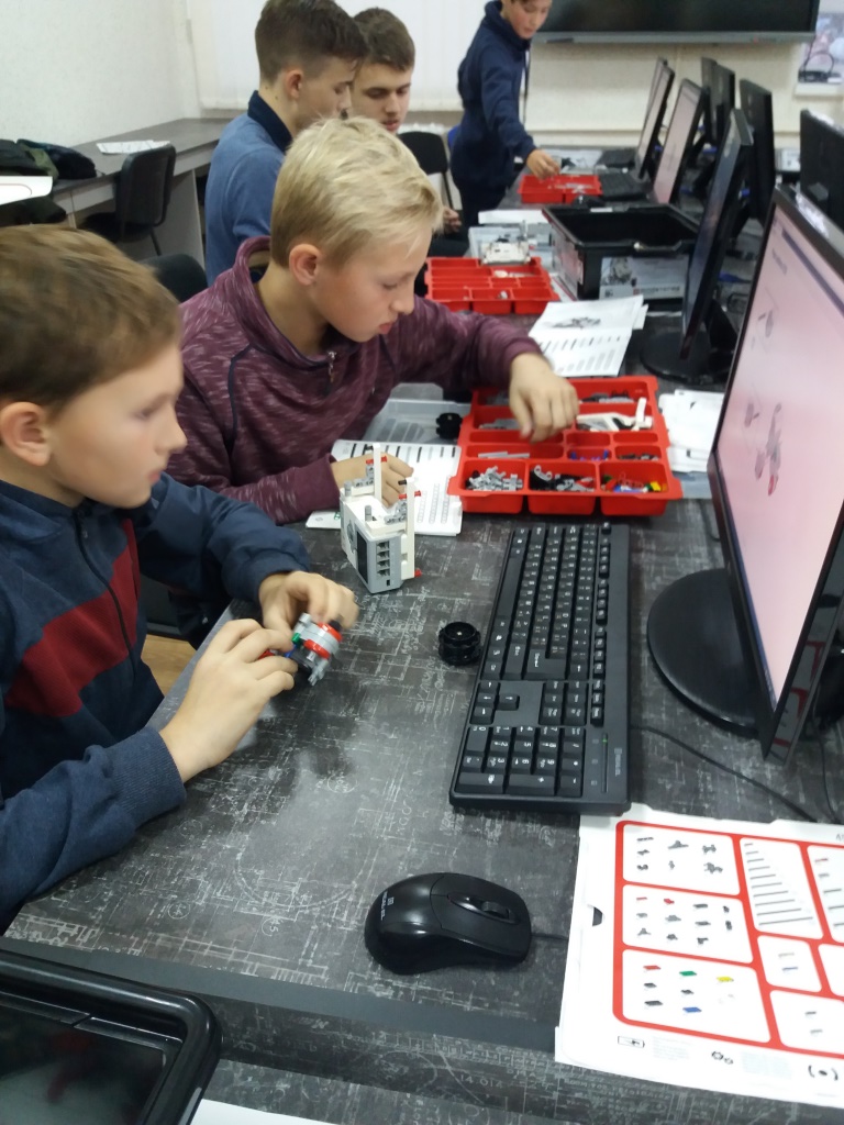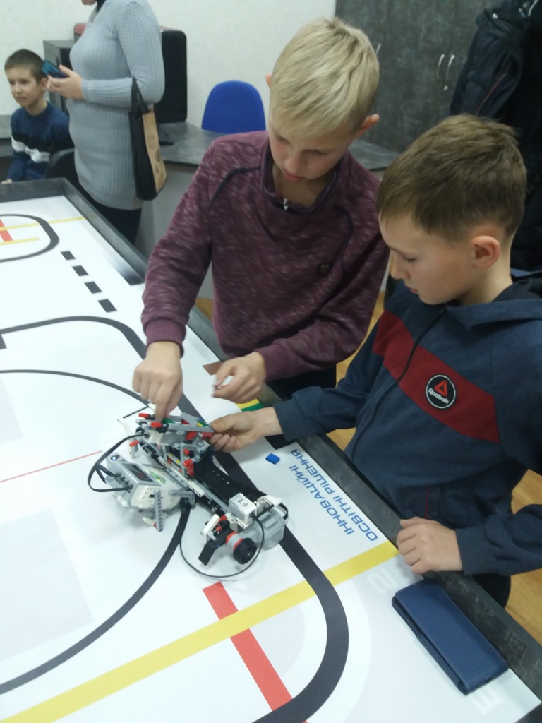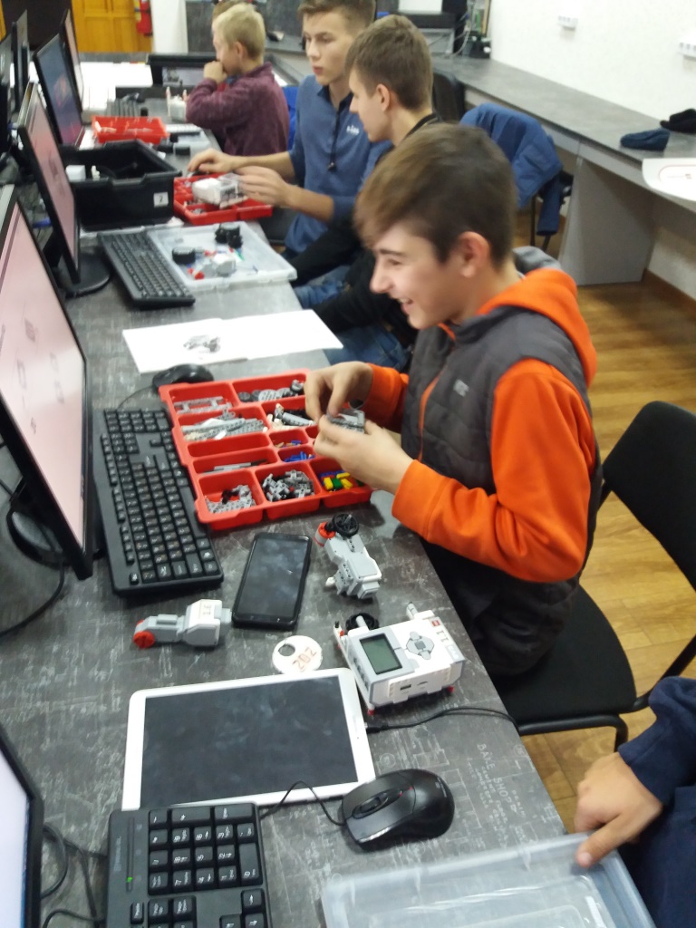Протягом 15 занять (з 01.11.19 по 20.12.19) учні віком від 9-14 років вивчали основні принципи роботи з конструкторами Lego Mindstorms EV3. Під керівництвом асистента кафедри інформатики і кібернетики Чорної А.В. діти вчились конструювати, моделювати та програмувати робота. Курс включав в себе наступні теми: