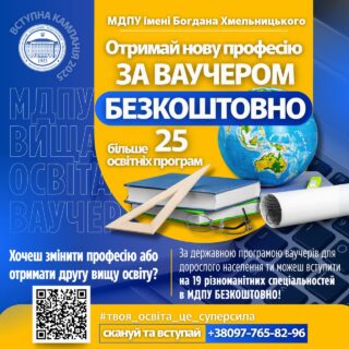 🧾 Отримай ваучер на безкоштовне навчання і вступай до МДПУ імені Богдана Хмельницького!