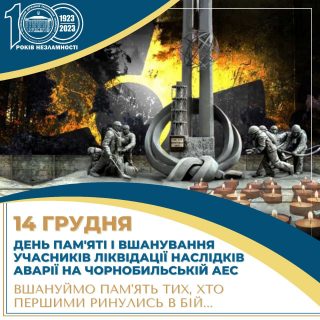 14 грудня в Україні відзначають День вшанування ліквідаторів наслідків аварії на ЧАЕС – людей, які ціною свого життя і здоров’я змогли здолати страшну трагедію XX ст., що сталася 26 квітня 1986 року на Чорнобильській АЕС.