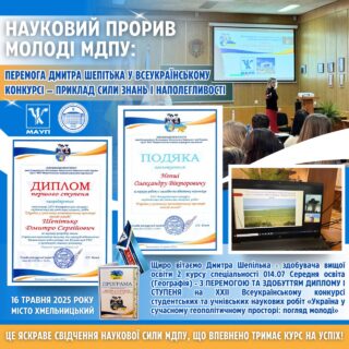 🏆🇺🇦Ця перемога — це не лише особисте досягнення, а яскраве свідчення того, що МДПУ імені Богдана Хмельницького— осередок наукової могутності і стійкості в умовах викликів часу!