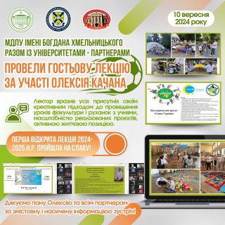 Гостьову лекцію на тему: «Фізична культура та спорт: вектори збереження та відновлення фізичного і ментального здоров’я нації» представив Олексій Анатолійович Качан – старший викладач кафедри філології та гуманітарних наук Комунального закладу вищої освіти Вінницької академії безперервної освіти, вчитель фізичної культури комунального закладу Жмеринський ліцей №3, Президент громадської організації «Українська федерація «Спорт заради розвитку», автор та координатор Національного проєкту «Цікава фізкультура 2.0 – перезавантаження», автор та координатор Всеукраїнського проекту «Єдина Україна» та імплементуючий партнер ЮНІСЕФ, півфіналіст премії Global Teacher Prize Ukraine – Топ 10, автор понад 150 наукових праць.