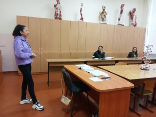 На фото: навчальне заняття проводить аспірант кафедри екології, загальної біології та раціонального природокористування МДПУ імені Богдана Хмельницького Умерова Ава Кадріївна. Має диплом магістра з відзнакою. Переможниця конкурсу «Вчитель-професіонал». Стаж педагогічної роботи на підготовчому відділенні – 3 роки. Наукові інтереси: вплив екологічних факторів на формування міських ландшафтів, моніторинг навколишнього середовища.