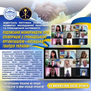 📅🎓 12 вересня 2025 року Мелітопольський державний педагогічний університет імені Богдана Хмельницького зробив ще один важливий крок у розвитку молодіжної політики та громадської активності — було підписано Меморандум про співпрацю з ГО «Козацька гвардія України».