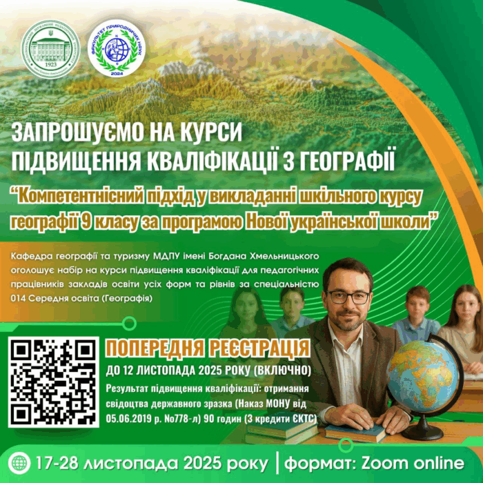 Відділ підвищення кваліфікації Мелітопольського державного педагогічного університету імені Богдана Хмельницького запрошує на курси підвищення кваліфікації для викладачів, вчителів, педагогів закладів освіти всіх форм та рівнів у 2025-2026 навчальному році за наступними освітніми програмами:
