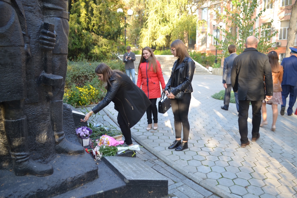 На знак шани та вдячності тим, кому не має забуття, до пам’ятника загиблим співробітникам і студентам університету поклали живі квіти.