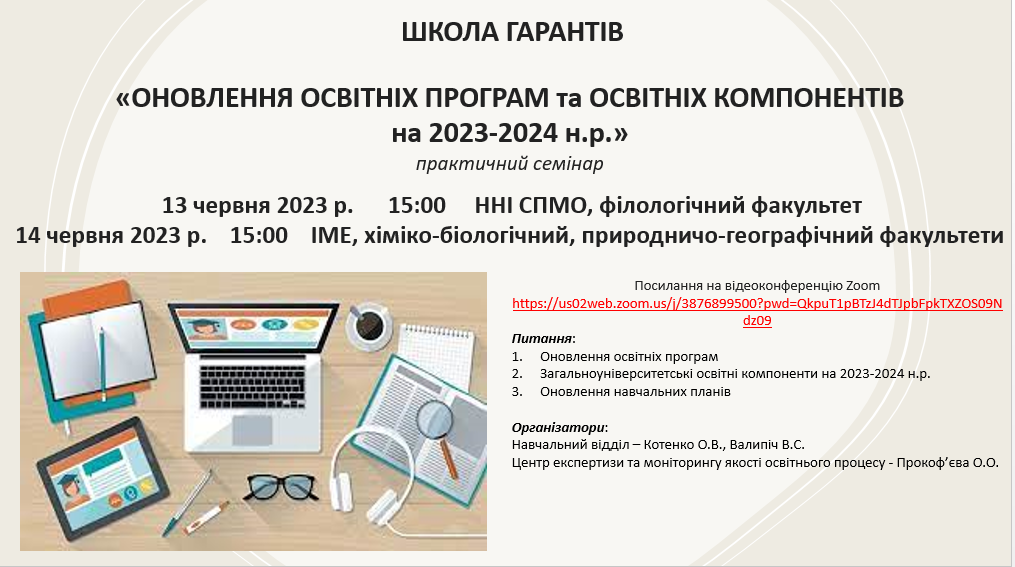 13 і 14 червня 2023 року в Мелітопольському державному педагогічному університеті імені Богдана Хмельницького відбувся практичний семінар у «Школі гарантів». Семінар було присвячено оновленню освітніх програм і освітніх компонентів на 2023-2024 н.р.
