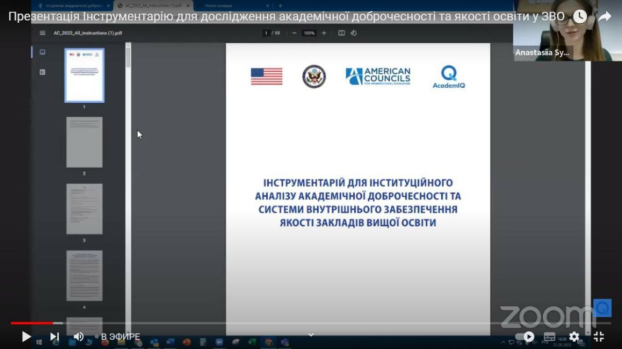 Представники Комісії з питань академічної доброчесності та запобігання плагіату в освітній діяльності МДПУ імені Б. Хмельницького взяли участь у заході «Презентація Інструментарію для дослідження академічної доброчесності та якості освіти у ЗВО» від Американських Рад з міжнародної освіти.