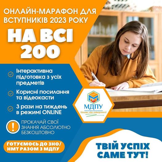 Запрошуємо всіх майбутніх вступників прокачати свої знання та розпочати підготовку до НМТ 2023 року на онлайн-марафоні “НА ВСІ 200” з МДПУ!