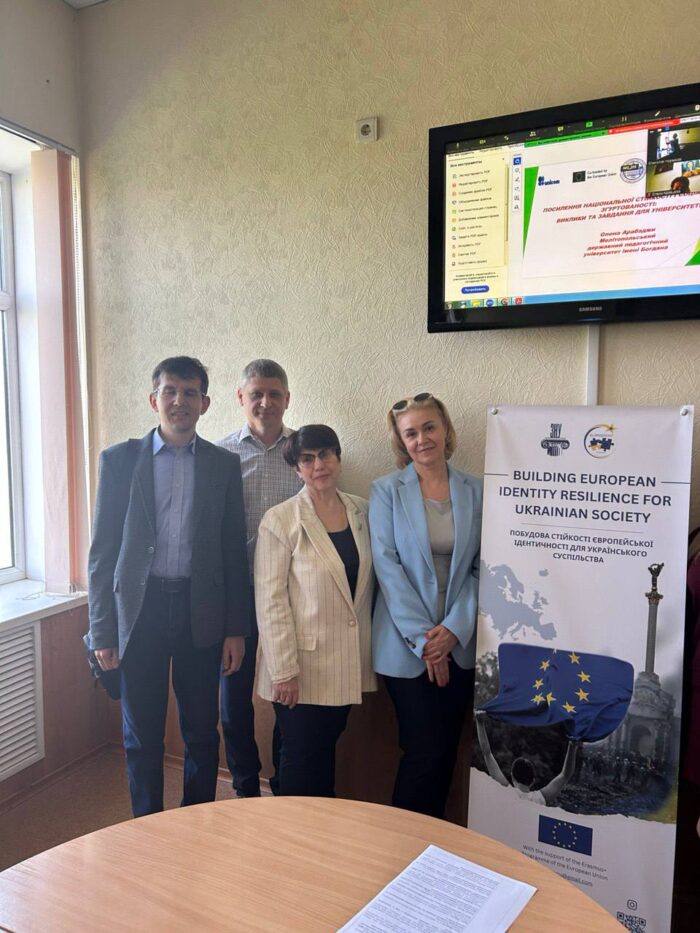 ⭐️🇪🇺 24 квітня 2025 року проректор з науково-педагогічної роботи, зовнішніх зв’язків і стратегічного розвитку Олена Арабаджи взяла участь у круглому столі «Підготовка стійкості європейської ідентичності українського суспільства», що відбувся в Запорізькому національному університеті в рамках міжнародного проєкту ERASMUS.