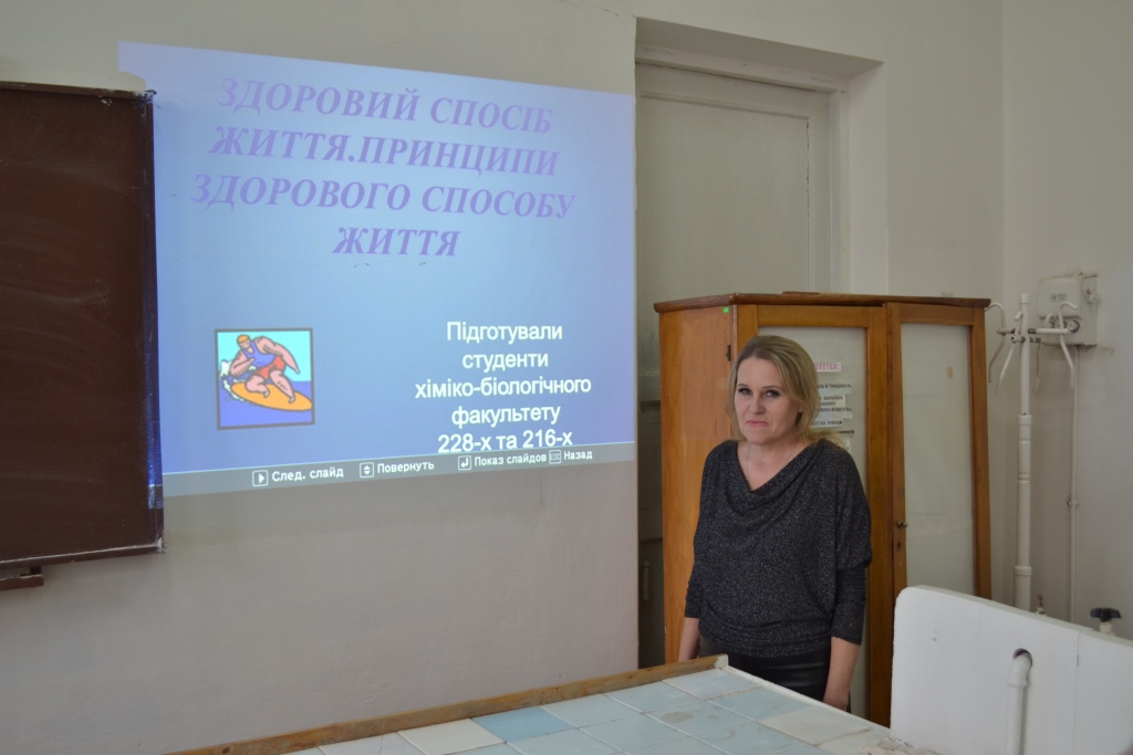 17 грудня 2019 року викладачами кафедри органічної і біологічної хімії Федорко А.С. та Гапоненко Т.М. було проведено виховний захід «Принципи здорового способу життя», в якому взяли участь студенти хіміко-біологічного факультету, а саме групи 226-х, 228-х, 216-х.