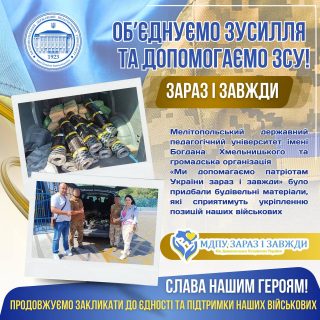 ✊🏻🇺🇦 Мелітопольський державний педагогічний університет імені Богдана Хмельницького та ГО “Зараз і завжди” продовжують підтримувати наших захисників. Цього разу ми об’єднали зусилля, щоб надати необхідну допомогу Національній гвардії м. Мелітополя.