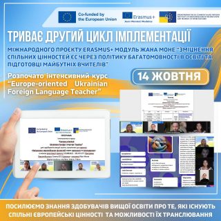 📝✅ З 14 жовтня 2024 року здобувачі вищої освіти, а саме академічні групи 111/1сп, 111/2сп, 211сп, 711сп, які залучені до реалізації проєкту, під керівництвом представників робочої групи проєкту доц. Аліни Маслової та доц. Ольги Гончарової, розпочали інтенсивний курс “Europe-oriented Ukrainian Foreign Language Teacher”, який посилить їх знання про те, які існують спільні Європейські цінності та як вчитель може транслювати ці цінності на уроках в закладах загальної середньої освіти.