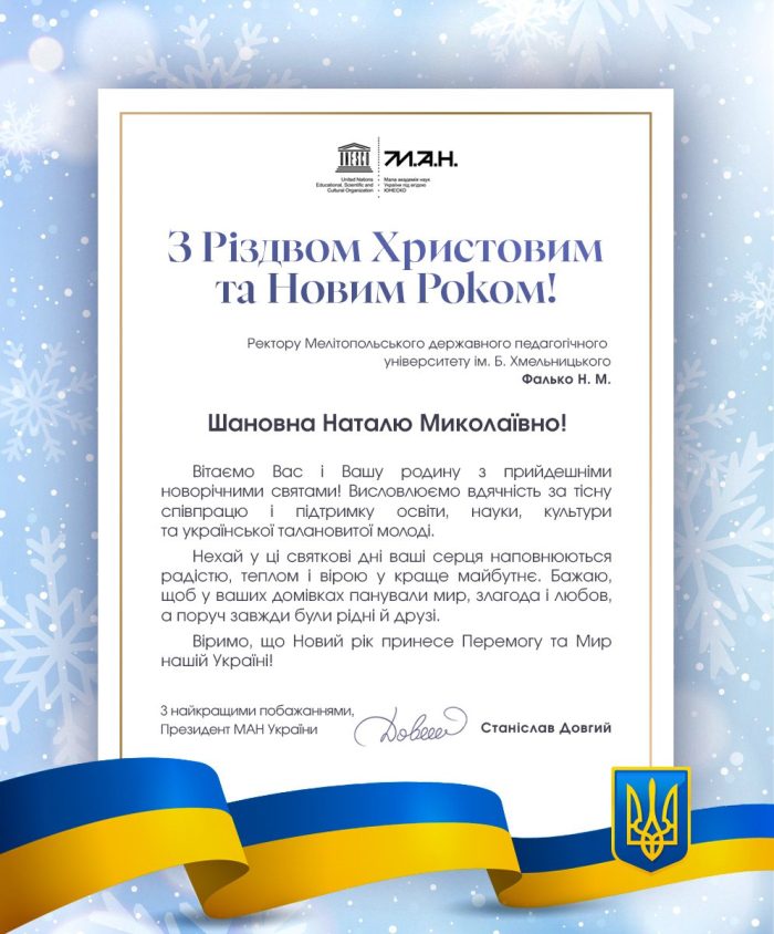 Мелітопольський державний педагогічний університет імені Богдана Хмельницького дякує партнерам, колегам, стейкхолдерам та друзям за вашу підтримку та спільні досягнення. Разом ми створюємо простір для інновацій, діалогу та позитивних змін у суспільстві.