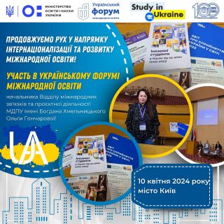 10 квітня 2024 року почав роботу Український форум міжнародної освіти, в якому наш університет представляє начальник Відділу міжнародних зв’язків та проєктної діяльності Ольга Гончарова.