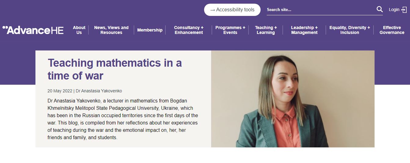 На сайті агентства з якості вищої освіти Великої Британії Advance HE вийшла стаття, в якій ідеться про досвід нашої викладачки Анастасії Яковенко щодо навчання студентів математики в умовах війни.