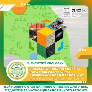 🎓⭐️15-16 лютого 2025 року на базі Малої академії наук (МАН) у місті Запоріжжя відбувся обласний конкурс наукових робіт учнів у секції “Англійська мова”, який зібрав 8 учасників з різних куточків Запорізької області.