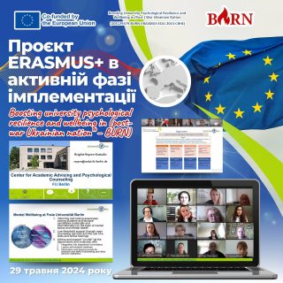📚✅Проєкт ERASMUS+ “Boosting university psychological resilience and wellbeing in (post-war Ukrainian nation” – BURN (Посилення психологічної стійкості і благополуччя університетів у (після)воєнній Україні), в якому бере участь наш університет, перебуває в активній фазі імплементації.