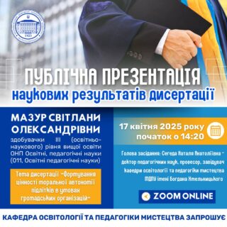 ПУБЛІЧНА ПРЕЗЕНТАЦІЯ НАУКОВИХ РЕЗУЛЬТАТІВ ДИСЕРТАЦІЇ