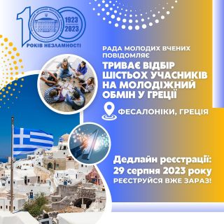Рада молодих вчених МДПУ імені Богдана Хмельницького повідомляє про відбір шістьох учасників на молодіжний обмін у Греції!