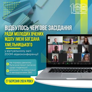 27 березня 2024 року в онлайн форматі відбулося чергове засідання Ради молодих вчених Мелітопольського державного педагогічного університету імені Богдана Хмельницького.