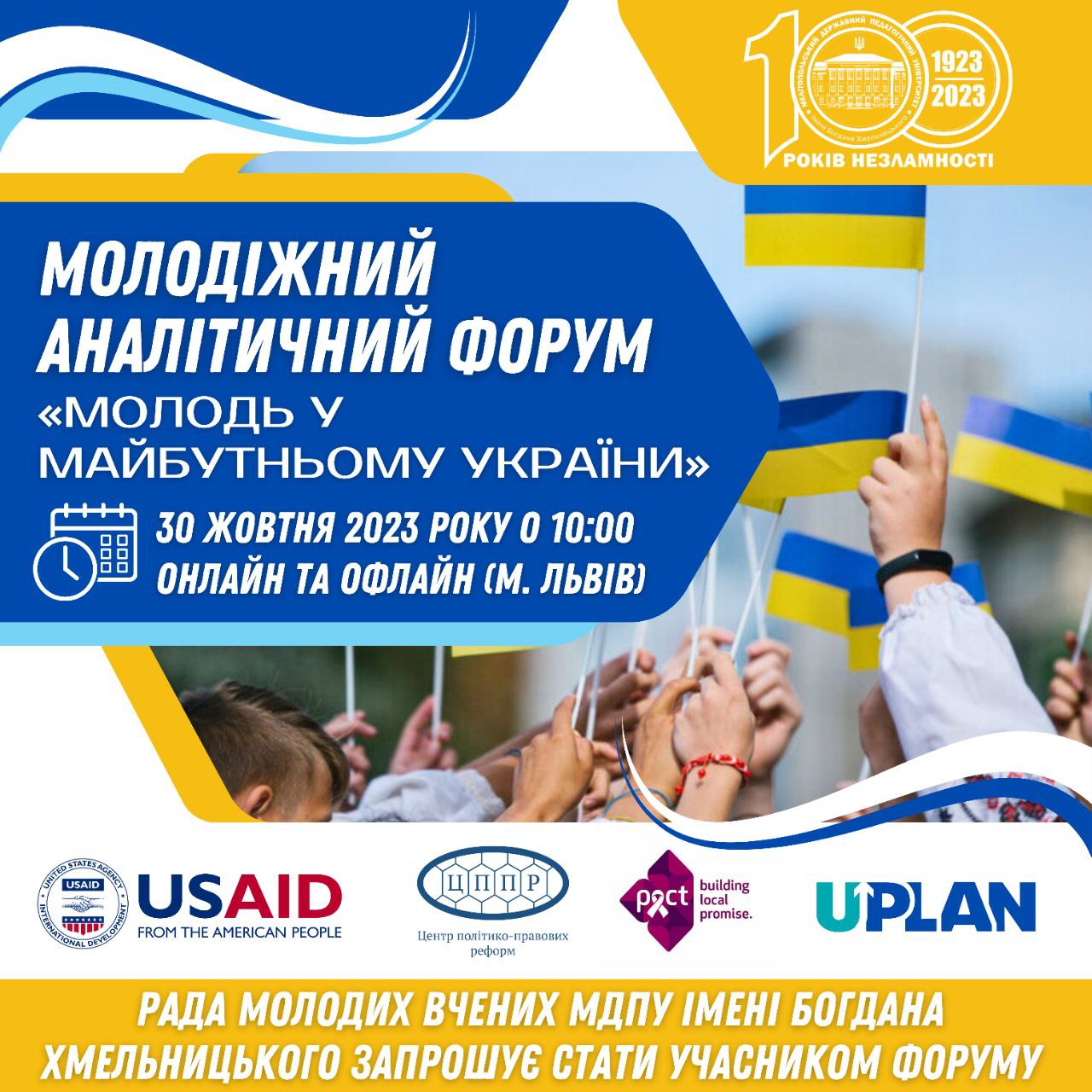 Рада молодих вчених університету запрошує молодь, яка цікавиться процесами державотворення, має активну громадянську позицію та бачить себе активним учасником розбудови держави, долучитися до Молодіжного аналітичного форуму.
