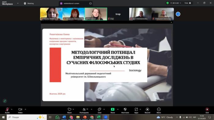 ✅👩🏼🎓 31 жовтня 2025 року на базі кафедри соціології та філософії пройшов методологічний семінар надзвичайно актуальний для молодих дослідників і дослідниць «Методологічний потенціал емпіричних досліджень у сучасних філософських студіях».