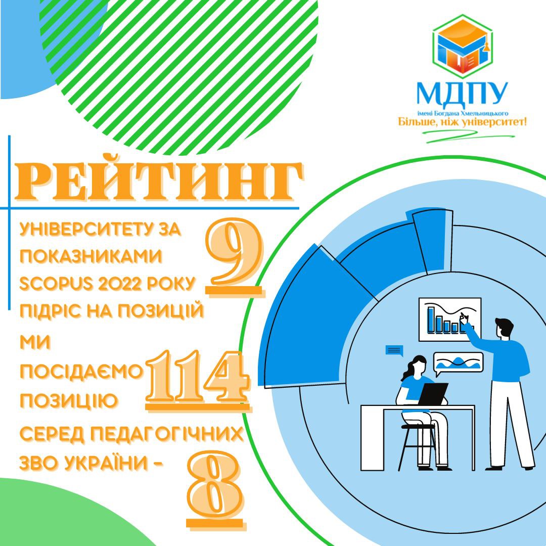 Згідно зі щорічним рейтингом українських закладів вищої освіти за показниками даних наукометричної бази даних Scopus Мелітопольський державний педагогічний університет імені Богдана Хмельницького посідає 114 позицію, у порівнянні з 2021 роком наш університет займав 123 місце.