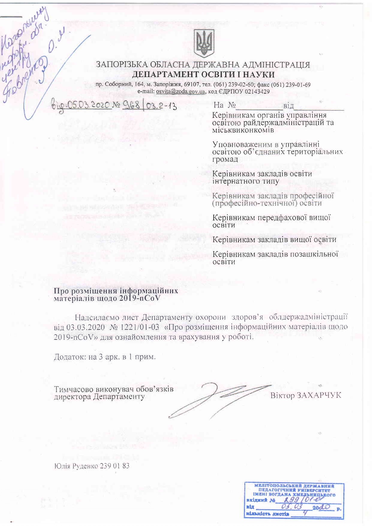Бер112020Новини університету Post Views: 125 Category: Новини університетуВід mdpu_supervisor11.03.2020Leave a comment Author: mdpu_supervisor Post navigationПопереднійПопередній пост:До уваги усіх зацікавлених випускників!NextNext post:Запрошуємо на змагання з жіночого волейболу!Related PostsМІЖНАРОДНИЙ ДЕНЬ ЗАПОБІГАННЯ ЕКСПЛУАТАЦІЇ НАВКОЛИШНЬОГО СЕРЕДОВИЩА ПІД ЧАС ВОЄННИХ І ЗБРОЙНИХ КОНФЛІКТІВ06.11.2025УСПІШНИЙ СТАРТ В АСПІРАНТУРІ: РЕКОМЕНДАЦІЇ ЩОДО СКЛАДАННЯ ІНДИВІДУАЛЬНОГО ПЛАНУ06.11.2025МРІЙ. ДІЙ. ПЕРЕМАГАЙ РАЗОМ З МДПУ!06.11.2025ЗАПРОШУЄМО ВЗЯТИ УЧАСТЬ У РОБОТІ КОНФЕРЕНЦІЇ!06.11.2025ВОРКШОП “ІДЕЇ ДЛЯ УРОКІВ МАЙБУТНЬОГО” — ОСВІТНІЙ ПРОСТІР ІННОВАЦІЙ ТА ПРОФЕСІЙНОГО ЗРОСТАННЯ!05.11.2025ВІТАЄМО З ПЕРЕМОГОЮ!05.11.2025