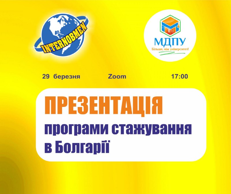 29 березня о 17:00 запрошуємо здобувачів Мелітопольського державного педагогічного університету ім. Б.Хмельницького на zoom-конференцію з компанією INTEROBMEN.