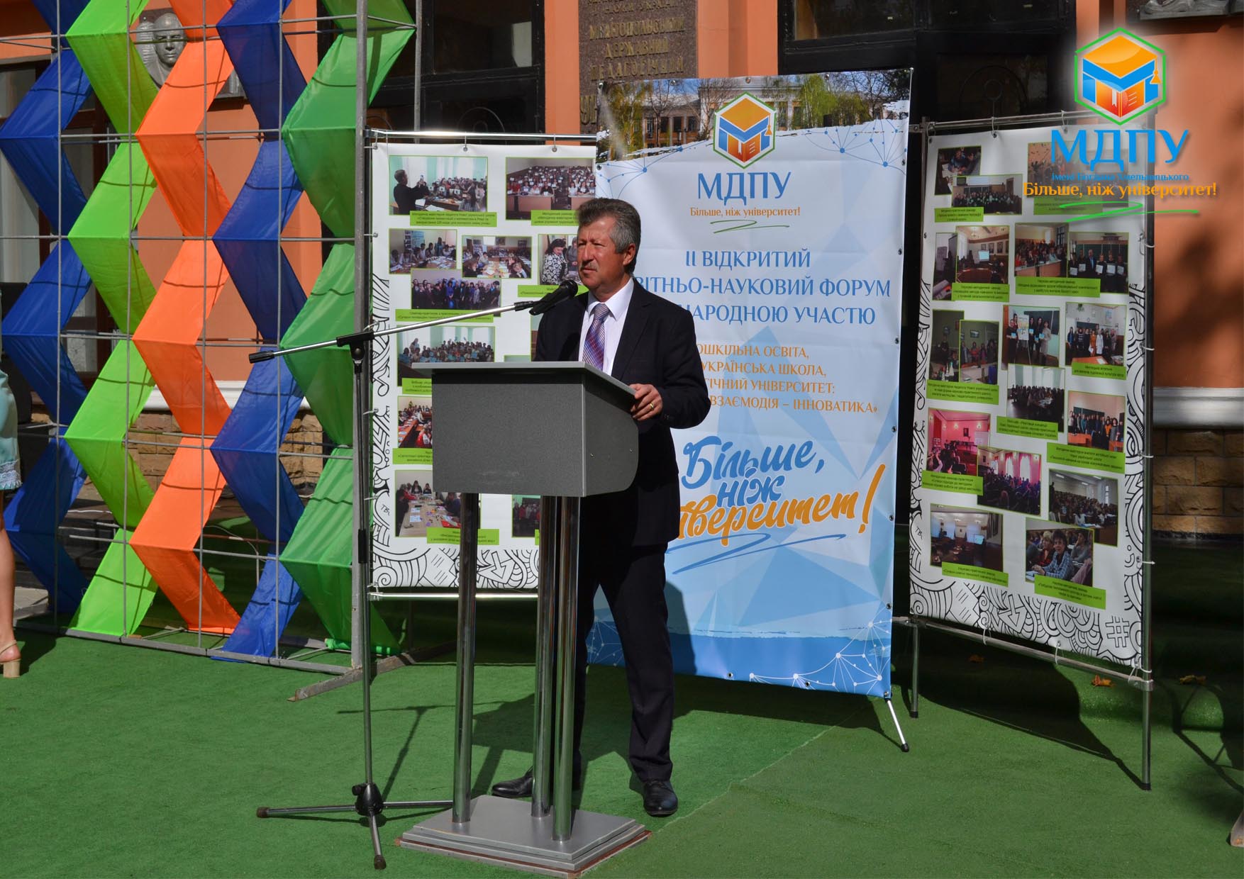 – У місті Мелітополі зосереджений величезний науковий потенціал, одним з його центрів є Мелітопольський державний педагогічний університет імені Богдана Хмельницького. Я дуже радий, що сьогодні на цьому Форумі сконцентровані всі гілки освіти, які є в місті: дошкільна, шкільна і вища. Хочу побажати плідної роботи всім учасникам Форуму!