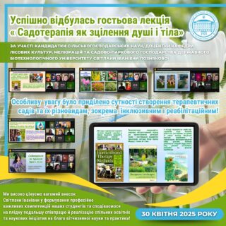 💻✅ Онлайн-лекція, що відбулася 30 квітня, була присвячена надзвичайно актуальній темі: «Садотерапія як зцілення душі і тіла».