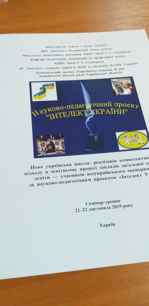21-22 листопада 2019 р. на базі КЗ «Харківська гімназія № 169 Харківської міської ради Харківської області» (м.Харків) старший викладач кафедри початкової освіти Чорна В.В. взяла участь у семінарі-тренінгу «Нова українська школа: реалізація компетентнісного підходу в освітньому процесі закладів загальної середньої освіти-учасників всеукраїнського експерименту за науково-педагогічним проектом «Інтелект України».