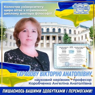 ТАРАСОВУ Вікторію Анатоліївну з присудженням наукового ступеня та отримання диплому доктора філософії!