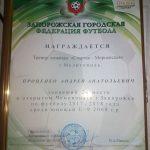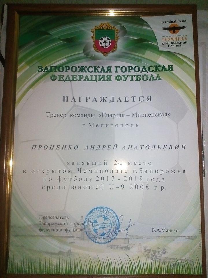 Професорсько-викладацький і студентський колективи Мелітопольського державного педагогічного університету імені Богдана Хмельницького щиро вітають асистента кафедри теорії і методики фізичного виховання та спортивних дисциплін Проценка Андрія Анатолійовича з нагородженням Грамотою Запорізької міської федерації футболу.