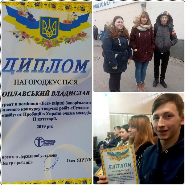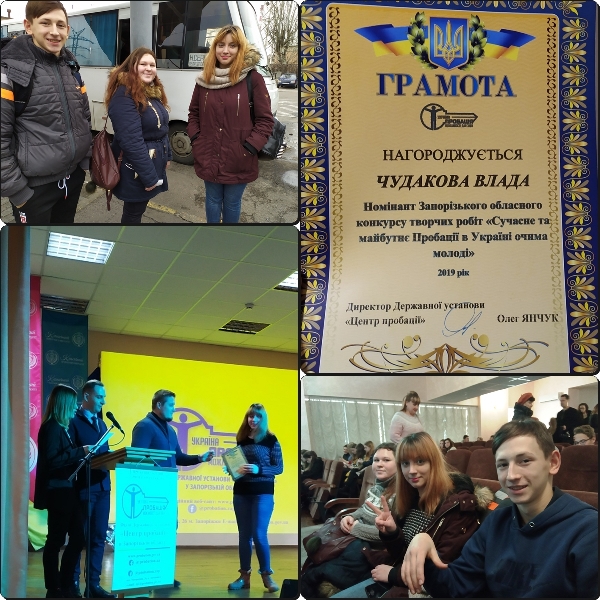 3 жовтня 2019 р. серед коледжів та вищів Запорізької області філією Державної установи «Центр Пробації» було оголошено конкурс творчих робіт «Сучасне та майбутнє Пробації в Україні очима молоді».