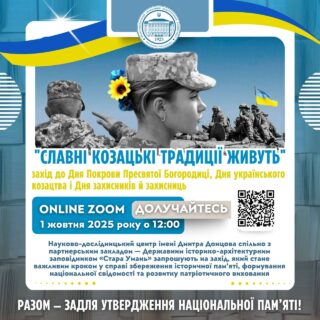 🎓‼️Науково-дослідницький центр імені Дмитра Донцова спільно з Державним історико-архітектурним заповідником «Стара Умань» запрошують до участі в національно-патріотичному заході «Славні козацькі традиції живуть», присвяченому Дню Покрови Пресвятої Богородиці, Дню українського козацтва та Дню захисників і захисниць України.
