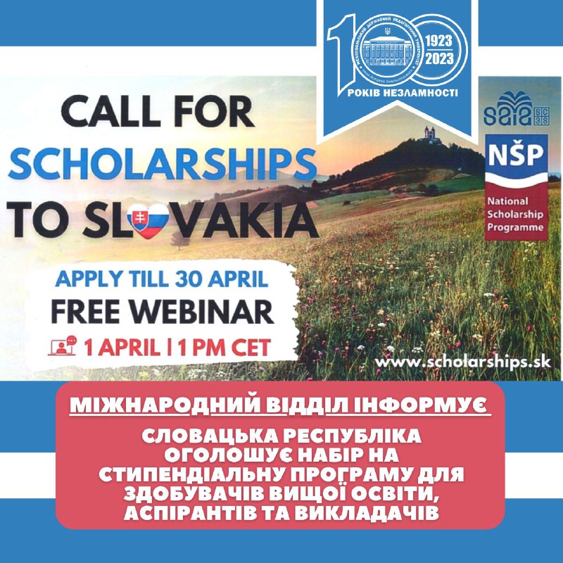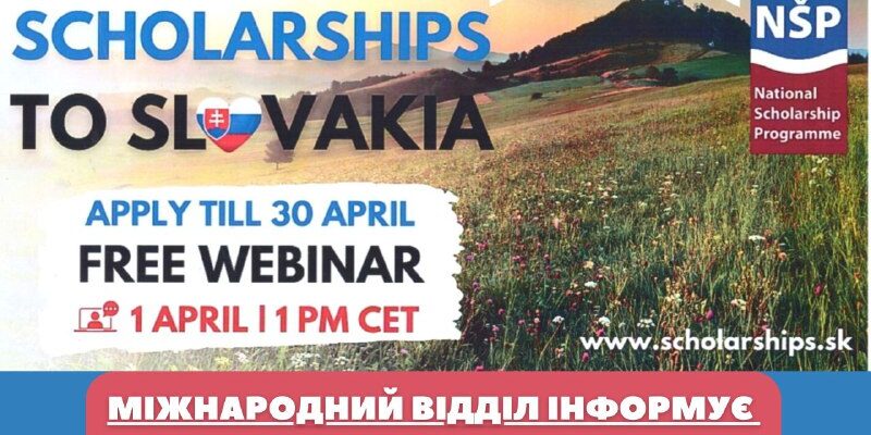 Словацька Республіка оголошує набір на стипендіальну програму для здобувачів вищої освіти, аспірантів та викладачів!