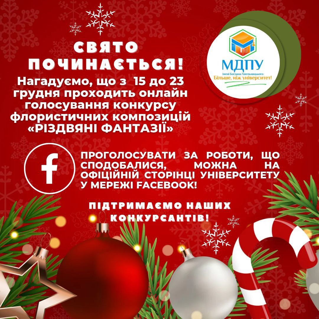 Нагадуємо, що ректорат університету та кафедра ботаніки і садово-паркового господарства ініціювали проведення онлайн-конкурсу флористичних різдвяних композицій “Різдвяні фантазії”.