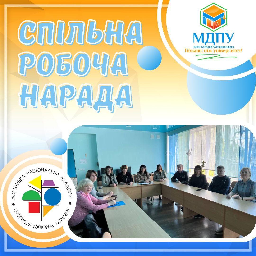 Сьогодні, 12 травня, відбулась спільна нарада колективів Хортицької національної навчально-реабілітаційної академії та МДПУ імені Богдана Хмельницького у змішаному режимі.