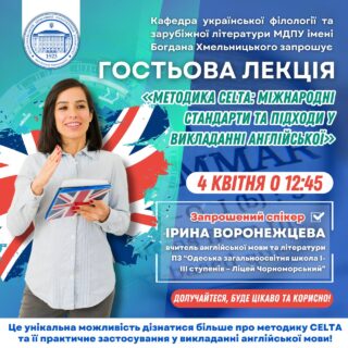 📝🇬🇧Запрошуємо на гостьову лекцію “Методика CELTA: міжнародні стандарти та підходи у викладанні англійської”