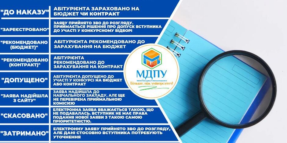 ✅ Відслідковувати весь процес проходження своєї електронної заяви до закладу вищої освіти вступник може через її статус.