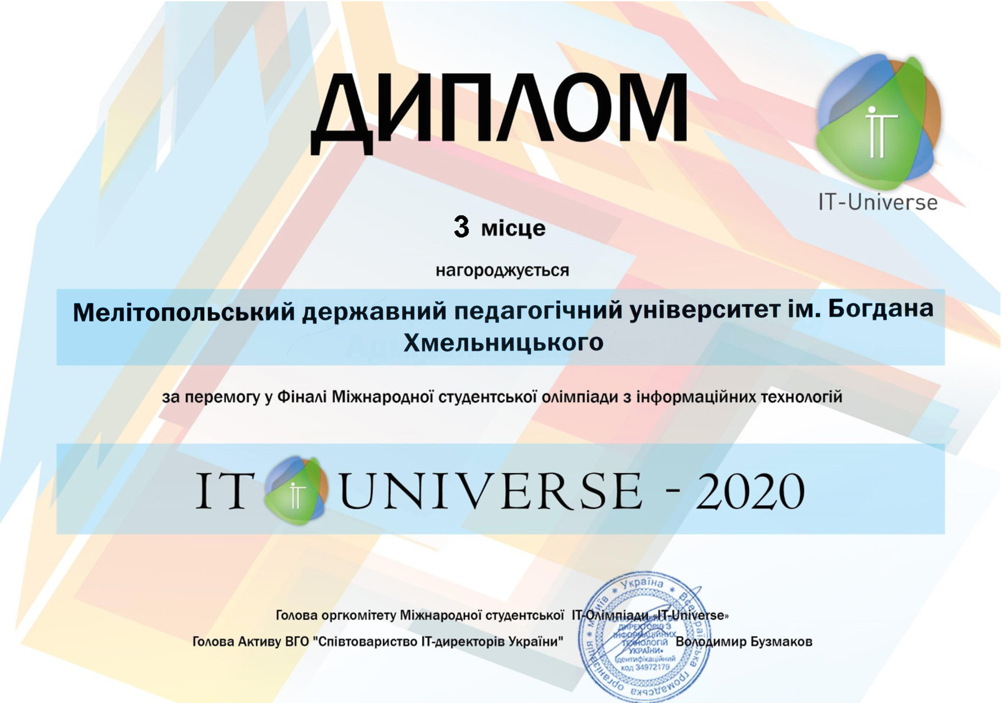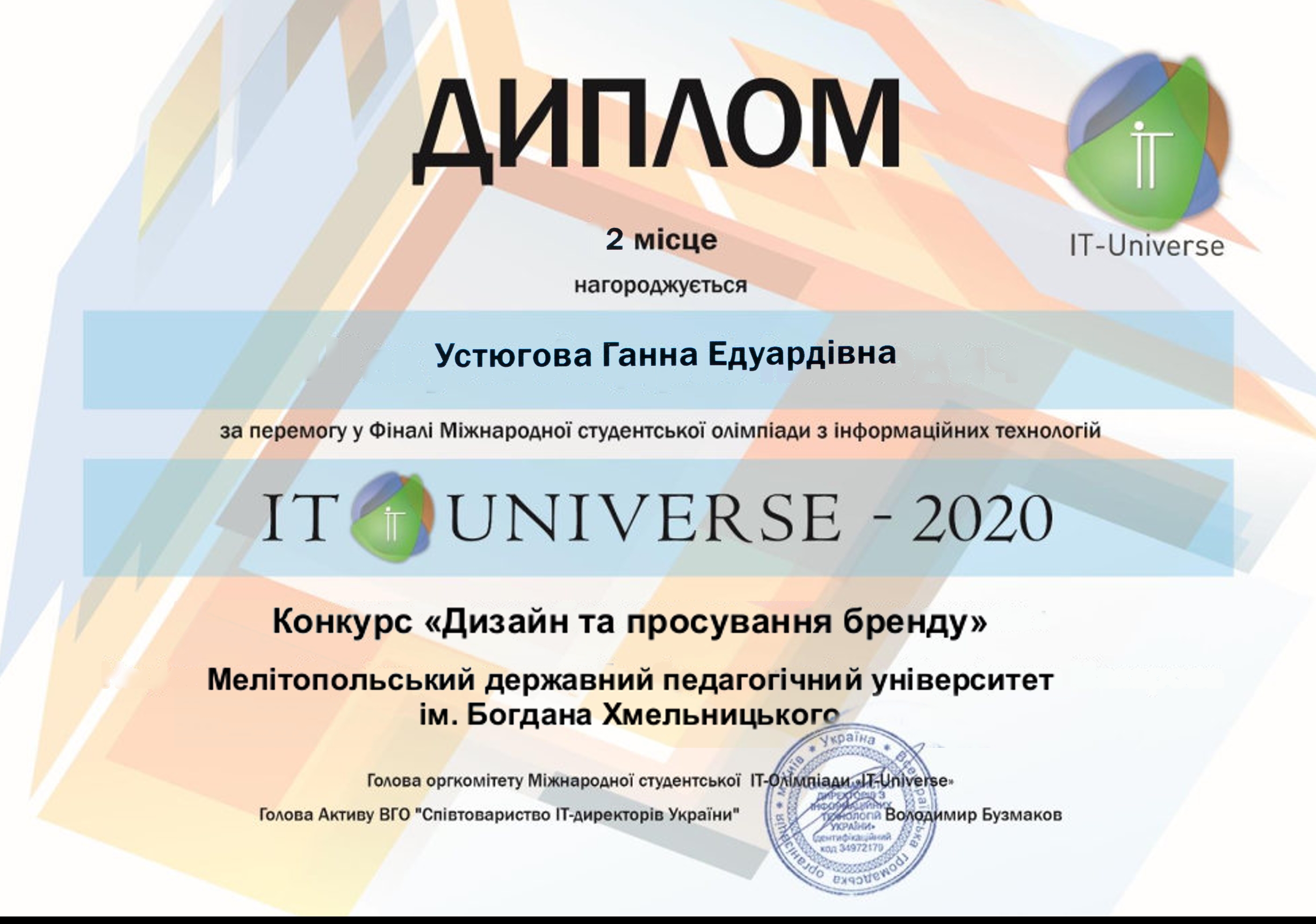 07 червня 2020 р. відбувся фінал Конкурсу «Дизайн та просування бренду», що проходив у рамках ювілейної Х Міжнародної студентської олімпіади в сфері інформаційних технологій «IT-Universe» (IT-Universe) – найбільшої ІТ-олімпіади на території СНГ.