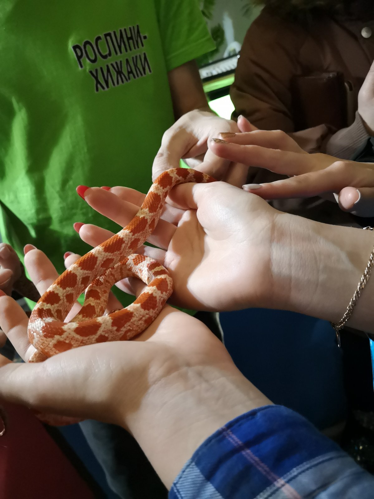 Павуки-птахоїди, водні та сухопутні черепахи, граційні яскраві змій, незвичайних ящірок, цікаві жаби та багато інших експонатів – все це захопило студентів. Найцікавішим від час екскурсії стало показове годування!