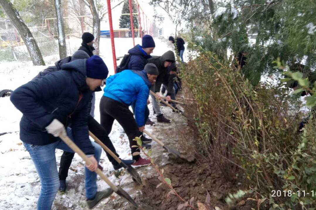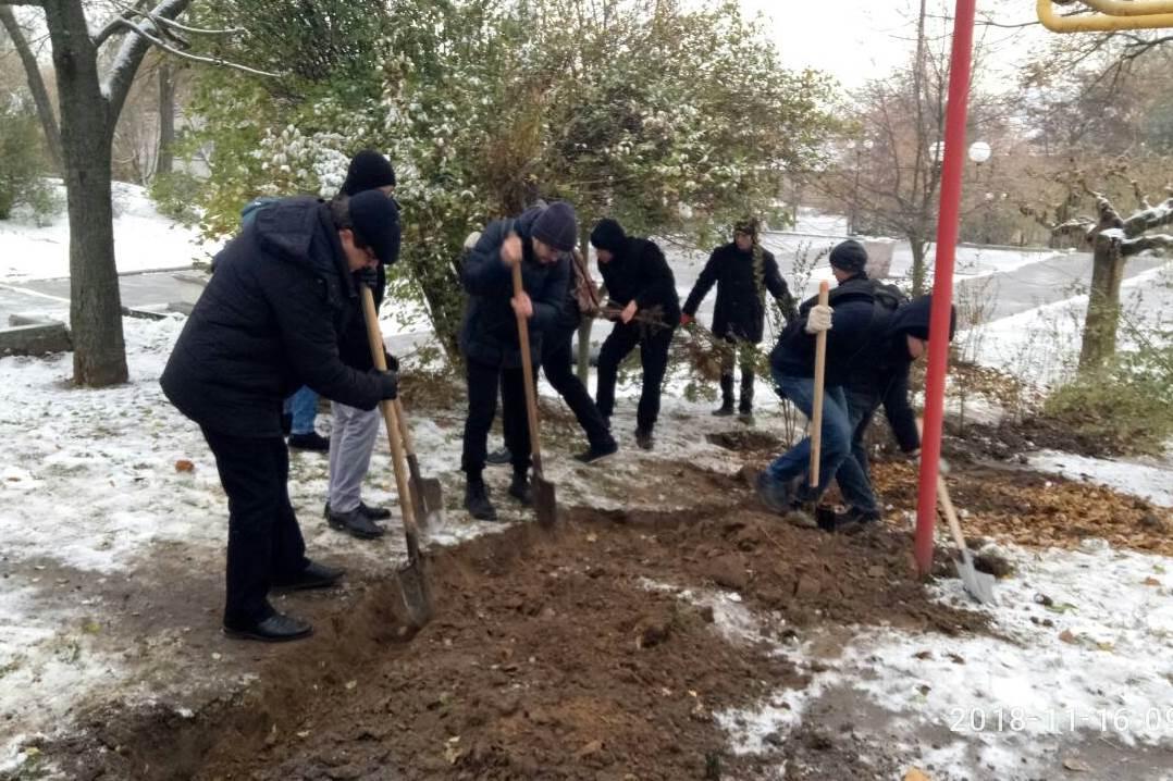 Не дивлячись на погоду, студенти Мелітопольського державного педагогічного університету імені Богдана Хмельницького взяли участь у міських толоках з озеленення в рамках акції «Зробимо своє місто краще!»