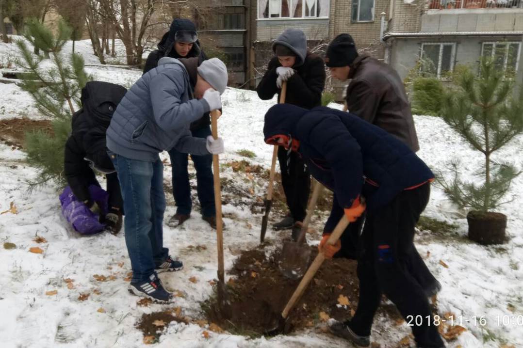 Завзяті хлопці факультету інформатики, математики та економіки, хіміко-біологічного та природничо-географічного факультетів разом з деканом факультету Павлом Бельчєвим і куратором з організаційно-виховної роботи зі студентською молоддю Ернестом Муртазієвим висадили на Алеї Слави сосни, кущі барбарису і горобини чорноплодної.